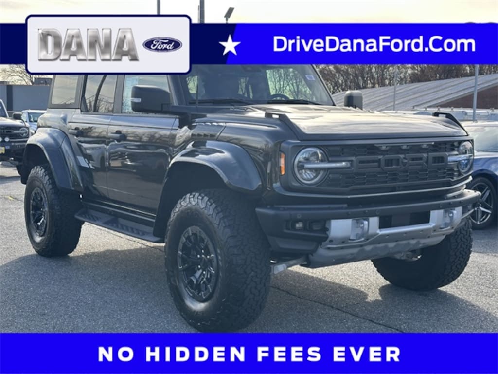 CARFAX One-Owner. Clean CARFAX. Certified. 2024 Ford Bronco Raptor *Fully detailed*, *Fresh oil change*, Ford Gold Certified Certified, Body Color-Painted Hard Top, Convertible HardTop, Equipment Group 374A High/Lux Package, Front Row Top Panels Storage Bag, Hard Top Sound Deadening Headliner, Navigation system: Connected Navigation, Rear-Window Defroster & Washer, Wheels: 17" Black High Gloss-Painted Aluminum, 10 Speakers, 4-Wheel Disc Brakes, 4.7 Axle Ratio, ABS brakes, Air Conditioning, AM/FM radio: SiriusXM with 360L, Auto High-beam Headlights, Auto-dimming Rear-View mirror, Automatic temperature control, Brake assist, Compass, Connected Navigation, Convertible roof lining, Delay-off headlights, Driver door bin, Driver vanity mirror, Dual front impact airbags, Dual front side impact airbags, Electronic Stability Control, Emergency communication system: 911 Assist, Exterior Parking Camera Rear, Front anti-roll bar, Front Bucket Seats, Front Center Armrest, Front dual zone A/C, Front fog lights, Front License Plate Bracket, Front reading lights, Front wheel independent suspension, Fully automatic headlights, Garage door transmitter, Glass rear window, Heated door mirrors, Heated front seats, Heated steering wheel, Illuminated entry, Integrated roll-over protection, Leather Shift Knob, Low tire pressure warning, Marine Grade Vinyl Bucket Seats, Occupant sensing airbag, Outside temperature display, Overhead airbag, Overhead console, Panic alarm, Passenger door bin, Passenger vanity mirror, Power door mirrors, Power steering, Power windows, Radio data system, Radio: B&O Sound System by Bang & Olufsen, Raptor Side & Hood Graphics, Rear anti-roll bar, Rear seat center armrest, Rear window defroster, Rear window wiper, Remote keyless entry, Security system, SiriusXM Radio w/360L, Speed control, Split folding rear seat, Steering wheel mounted audio controls, SYNC 4, Tachometer, Telescoping steering wheel, Tilt steering wheel, Traction control, Trip computer, Turn signal indicator mirrors, Variably intermittent wipers, Voltmeter, Body Color-Painted Hard Top, Convertible HardTop, Equipment Group 374A High/Lux Package, Front Row Top Panels Storage Bag, Hard Top Sound Deadening Headliner, Navigation system: Connected Navigation, Rear-Window Defroster & Washer, Wheels: 17" Black High Gloss-Painted Aluminum.