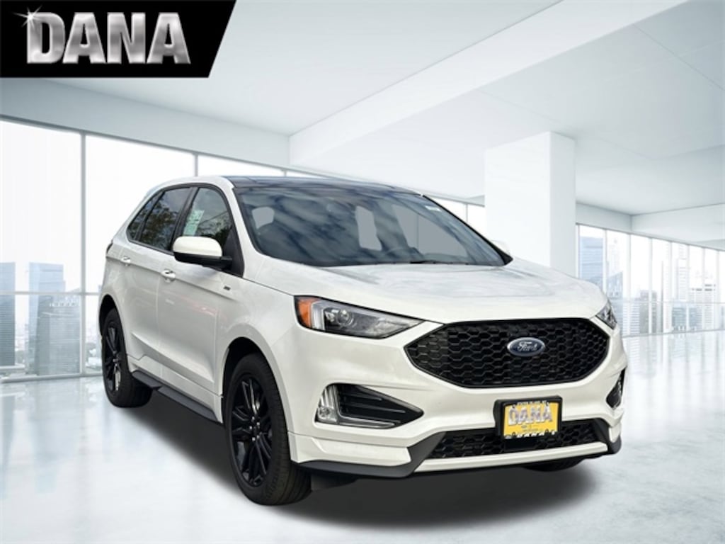 Recent Arrival! CARFAX One-Owner. Clean CARFAX. Certified. 2024 Ford Edge ST Line *Fully detailed*, *Fresh oil change*, Ford Gold Certified , AWD, Cargo Accessory Package, Cargo Mat, Heated Steering Wheel, Panoramic Vista Roof, Rear Bumper Protector, Retractable Cargo Area Cover, 3.80 Axle Ratio, 4-Wheel Disc Brakes, 6 Speakers, ABS brakes, ActiveX Trimmed Heated Bucket Seats, Air Conditioning, Alloy wheels, AM/FM radio: SiriusXM with 360L, AM/FM Stereo, Auto High-beam Headlights, Auto-dimming Rear-View mirror, Automatic temperature control, Brake assist, Bumpers: body-color, Compass, Delay-off headlights, Driver door bin, Driver vanity mirror, Dual front impact airbags, Dual front side impact airbags, Electronic Stability Control, Emergency communication system: SYNC 4 911 Assist, FordPass Connect, Four wheel independent suspension, Front & Rear Floor Liners w/Carpet Mats, Front anti-roll bar, Front Bucket Seats, Front Center Armrest w/Storage, Front dual zone A/C, Front License Plate Bracket, Front reading lights, Fully automatic headlights, Heated door mirrors, Heated front seats, Illuminated entry, Knee airbag, Leather steering wheel, Low tire pressure warning, Occupant sensing airbag, Outside temperature display, Overhead airbag, Overhead console, Panic alarm, Passenger door bin, Passenger vanity mirror, Power door mirrors, Power driver seat, Power Liftgate, Power passenger seat, Power steering, Power windows, Rear anti-roll bar, Rear Parking Sensors, Rear reading lights, Rear seat center armrest, Rear window defroster, Rear window wiper, Remote keyless entry, SiriusXM w/360L, Speed control, Speed-Sensitive Wipers, Split folding rear seat, Spoiler, Steering wheel mounted audio controls, SYNC 4A w/Enhanced Voice Recognition, Tachometer, Telescoping steering wheel, Tilt steering wheel, Traction control, Trip computer, Variably intermittent wipers, AWD, Cargo Accessory Package, Cargo Mat, Heated Steering Wheel, Panoramic Vista Roof, Rear Bumper Protector, Retractable Cargo Area Cover.