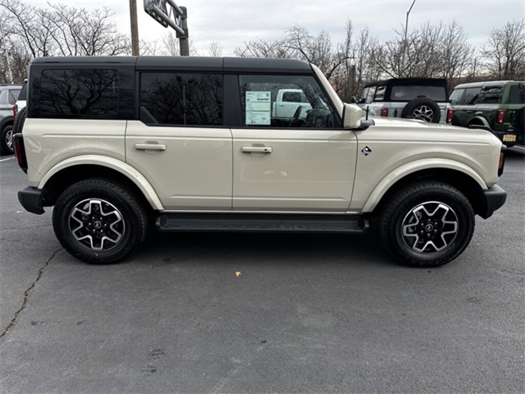 Recent Arrival! CARFAX One-Owner. Clean CARFAX. Certified. 2025 Ford Bronco Outer Banks *Fully detailed*, *Fresh oil change*, Ford Gold Certified , 18" Bright Machined Aluminum Wheels, Equipment Group 312A Mid Package, 3.73 Axle Ratio, 4-Wheel Disc Brakes, 7 Speakers, ABS brakes, Air Conditioning, AM/FM radio: SiriusXM with 360L, AM/FM Stereo, Auto High-beam Headlights, Auto-dimming Rear-View mirror, Automatic temperature control, Brake assist, Compass, Connected Navigation, Delay-off headlights, Driver door bin, Driver vanity mirror, Dual front impact airbags, Dual front side impact airbags, Electronic Stability Control, Emergency communication system: 911 Assist, Exterior Parking Camera Rear, Front anti-roll bar, Front Bucket Seats, Front Center Armrest, Front dual zone A/C, Front fog lights, Front License Plate Bracket, Front reading lights, Front wheel independent suspension, Fully automatic headlights, Hard Top Sound Deadening Headliner, Heated door mirrors, Heated front seats, Heated Leather-Trimmed/Vinyl Bucket Seats, Heated steering wheel, Illuminated entry, Integrated roll-over protection, Internet access capable: FordPass Connect, Leather Shift Knob, Low tire pressure warning, Navigation system: Connected Navigation, Occupant sensing airbag, Outside temperature display, Overhead airbag, Overhead console, Panic alarm, Passenger door bin, Passenger vanity mirror, Power door mirrors, Power driver seat, Power passenger seat, Power steering, Power windows, Radio data system, Rear seat center armrest, Rear-Window Defroster & Washer, Remote keyless entry, Security system, Shadow Black-Painted Hard Top, SiriusXM w/360L, Speed control, Split folding rear seat, Steering wheel mounted audio controls, SYNC 4, Tachometer, Telescoping steering wheel, Tilt steering wheel, Traction control, Trip computer, Variably intermittent wipers, Voltmeter, 18" Bright Machined Aluminum Wheels, Equipment Group 312A Mid Package.
