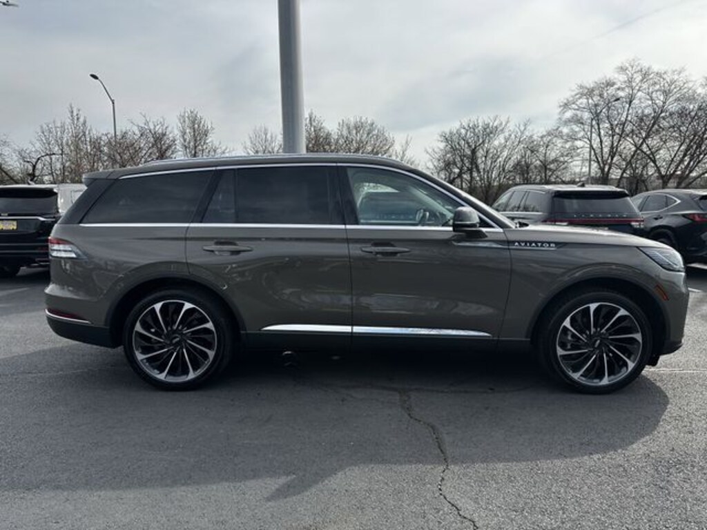 CARFAX One-Owner. Certified. 2025 Lincoln Aviator Reserve 14 Speakers, 30-Way Perfect Position Seats w/Active Motion, 3rd row seats: split-bench, 4-Wheel Disc Brakes, 40/Mini Console/40 Dual Captain's Chairs, ABS brakes, Adaptive Dynamic Bending Lighting, Adaptive Pixel LED Headlamps, Adaptive suspension, Advanced Heads-Up Display, Air Conditioning, All-Weather 1st & 2nd Row Floor Liners, Alloy wheels, AM/FM radio: SiriusXM, Apple CarPlay/Android Auto, Audio memory, Auto Air Refresh, Auto High-beam Headlights, Auto-dimming door mirrors, Auto-dimming Rear-View mirror, Automatic temperature control, Brake assist, Bumpers: body-color, Compass, Delay-off headlights, Driver door bin, Driver vanity mirror, Dual front impact airbags, Dual front side impact airbags, Electronic Stability Control, Emergency communication system: 911 Assist, Equipment Group 201A, Four wheel independent suspension, Front anti-roll bar, Front Bucket Seats, Front Center Armrest, Front dual zone A/C, Front License Plate Bracket, Front reading lights, Full Rear Console, Fully automatic headlights, Garage door transmitter, Genuine wood console insert, Genuine wood dashboard insert, Heads-Up Display, Heated & Ventilated Rear Seats, Heated door mirrors, Heated front seats, Heated steering wheel, HVAC memory, Illuminated entry, Illuminated Lincoln Star in Grille, Illumination Package, Knee airbag, Leather steering wheel, Lincoln BlueCruise Equipped (4-Years Included), Lincoln Digital Experience, Lincoln Dynamic Signature Lighting, Low tire pressure warning, Luxury Package, Memory seat, Navigation system: Connected Navigation (1-year trial), Occupant sensing airbag, Outside temperature display, Overhead airbag, Overhead console, Panic alarm, Passenger door bin, Passenger vanity mirror, Power door mirrors, Power driver seat, Power Liftgate, Power moonroof: Panoramic Vista Roof, Power passenger seat, Power steering, Power windows, Premium Lthr Heated/Ventilated Fnt Captain's Chairs, Radio data system, Radio: Revel Audio System w/14 Speakers, Radio: Revel Ultima 3D Audio System w/28 Speakers, Rain sensing wipers, Rear air conditioning, Rear anti-roll bar, Rear audio controls, Rear dual zone A/C, Rear reading lights, Rear window defroster, Rear window wiper, Remote keyless entry, Security system, SiriusXM, Speed control, Speed Dependent Lighting, Speed-Sensitive Wipers, Split folding rear seat, Spoiler, Steering wheel memory, Steering wheel mounted A/C controls, Steering wheel mounted audio controls, Tachometer, Telescoping steering wheel, Tilt steering wheel, Traction control, Trip computer, Turn signal indicator mirrors, Variably intermittent wipers, Ventilated front seats, Wheels: 21" Bright-Machined Aluminum, Wheels: 22" Bright-Machined Aluminum, Wireless Charging Pad.