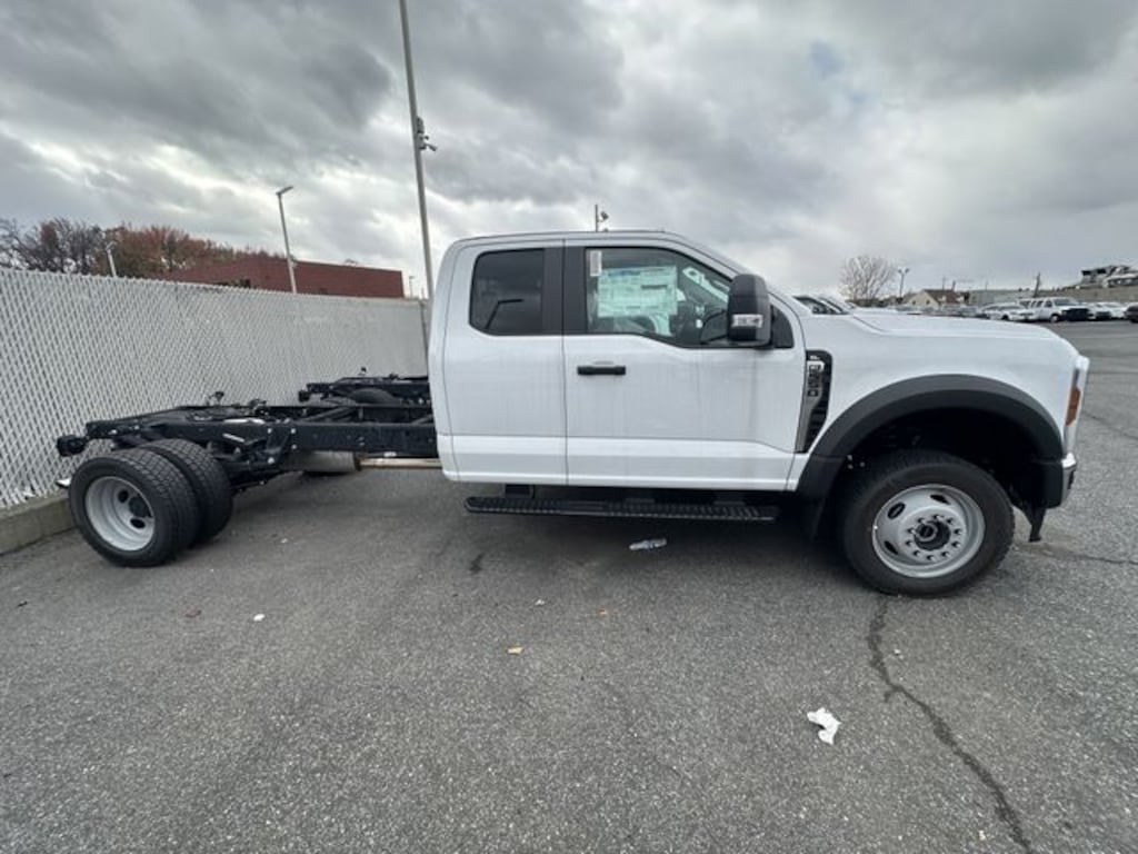 Oxford White 2024 Ford F-550SD XL DRW 4WD 10-Speed Automatic 7.3L V8 PFI OHV 16V Federal 335hp 4WD, 120V/400W Outlet, 4-Wheel Disc Brakes, 410 Amp Dual Alternators, 6 Speakers, 6-Ton Hydraulic Jack, ABS brakes, Air Conditioning, AM/FM radio, Brake assist, Bright Grille, Center High-Mounted Stop Lamp (CHMSL), Chrome Front Bumper, Compass, Delay-off headlights, Dual 68 AH/65 AGM Battery, Dual front impact airbags, Dual front side impact airbags, Dual rear wheels, Emergency communication system: SYNC 4 911 Assist, Engine Block Heater, Front anti-roll bar, Front Center Armrest w/Storage, Front License Plate Bracket, Front reading lights, Fully automatic headlights, GVWR: 18,000 lbs Payload Package, GVWR: 19,500 lb Payload Plus Upgrade Package, Halogen Fog Lamps, HD Vinyl 40/20/40 Split Bench Seat, Heated door mirrors, Illuminated entry, Order Code 660A, Outside temperature display, Overhead airbag, Overhead console, Panic alarm, Passenger cancellable airbag, Passenger vanity mirror, Platform Running Boards, Power door mirrors, Power Sliding Rear Glass, Power steering, Power windows, Rear anti-roll bar, Rear View Camera & Prep Kit, Rear Window Defroster, Remote keyless entry, Remote Start, Snow Plow Prep Package, Speed control, Split folding rear seat, Steering wheel mounted audio controls, SYNC 4 Communications & Entertainment System, Tachometer, Telescoping steering wheel, Tilt steering wheel, Traction control, Trip computer, Turn signal indicator mirrors, Variably intermittent wipers, Wheels: 19.5" x 6" Argent Painted Steel, XL Chrome Package, 4WD.