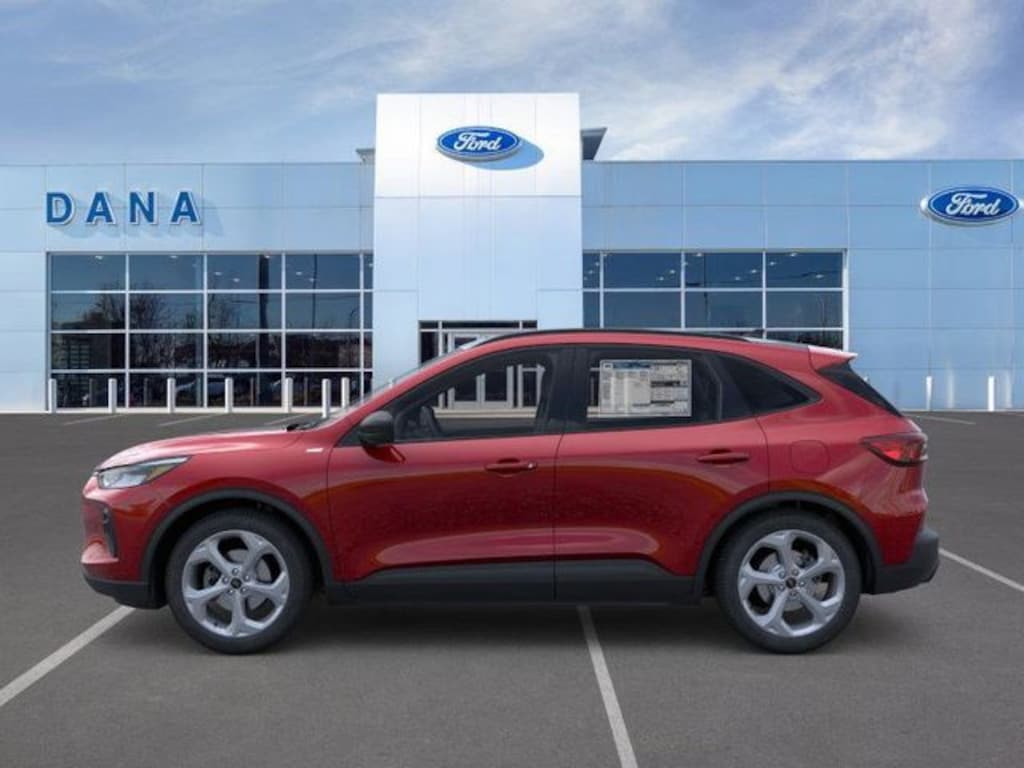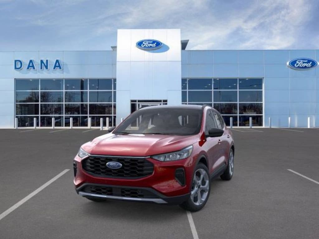 Rapid Red Metallic Tinted Clearcoat 2025 Ford Escape ST-Line AWD 8-Speed Automatic 1.5L EcoBoost AWD, 3.81 Axle Ratio, 4-Wheel Disc Brakes, 6 Speakers, ABS brakes, Adaptive Cruise Control w/Stop-and-Go, Air Conditioning, Alloy wheels, AM/FM radio: SiriusXM, AM/FM Stereo, Auto High-beam Headlights, Automatic temperature control, Black Roof-Rack Side Rails, Brake assist, Bumpers: body-color, Cold Weather Package, Compass, Connected Navigation, Delay-off headlights, Driver door bin, Driver vanity mirror, Dual front impact airbags, Dual front side impact airbags, Electronic Stability Control, Emergency communication system: SYNC 4 911 Assist, Equipment Group 300A, Ford Co-Pilot360 Assist+, FordPass Connect, Four wheel independent suspension, Front anti-roll bar, Front Bucket Seats, Front Center Armrest, Front dual zone A/C, Front License Plate Bracket, Front reading lights, Fully automatic headlights, Heated Front Row Seats, Heated Sideview Mirrors, Heated Steering Wheel, Illuminated entry, Internet access capable: FordPass Connect 4G, Intersection Assist, Knee airbag, Low tire pressure warning, Occupant sensing airbag, Outside temperature display, Overhead airbag, Overhead console, Panic alarm, Panoramic Vista Roof, Passenger door bin, Passenger vanity mirror, Power door mirrors, Power driver seat, Power Liftgate, Power steering, Power windows, Predictive Speed Assist, Radio data system, Rear anti-roll bar, Rear Parking Sensor, Rear reading lights, Rear seat center armrest, Rear window defroster, Rear window wiper, Rear-View Camera, Remote keyless entry, Remote Starter System, Speed control, Speed-sensing steering, Speed-Sensitive Wipers, Split folding rear seat, Spoiler, Sport steering wheel, Steering wheel mounted audio controls, SYNC 4, SYNC 4 w/Enhanced Voice Recognition, Tachometer, Tech Pack #1, Telescoping steering wheel, Tilt steering wheel, Traction control, Trip computer, Variably intermittent wipers, Vinyl/Cloth Front Sport Contour Bucket Seats, Wheels: 18" Rock Metallic Painted Aluminum, AWD.