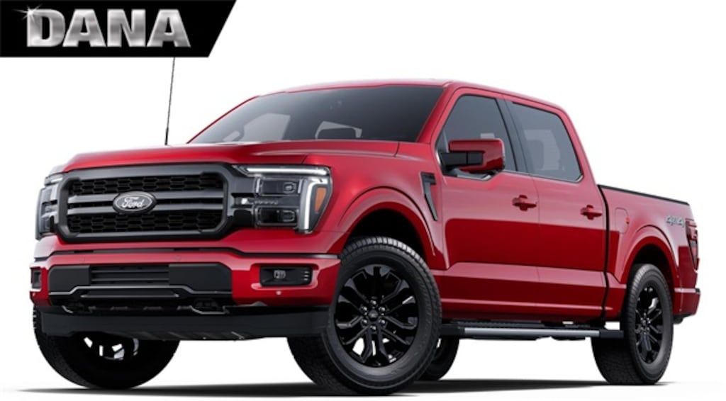 Rapid Red Metallic Tinted Clearcoat 2025 Ford F-150 Lariat 4WD 10-Speed Automatic 3.5L V6 EcoBoost 4WD, 4 Pickup Box Tie-Down Plates, 4-Wheel Disc Brakes, 4x4 FX4 Off-Road Bodyside Decal, 6" Extended Running Boards, 8 Speakers, ABS brakes, ActiveX Trimmed Bucket Seats, Adjustable pedals, Air Conditioning, Alloy wheels, AM/FM radio: SiriusXM with 360L, Auto High-beam Headlights, Auto-dimming door mirrors, Auto-dimming Rear-View mirror, Automatic temperature control, Bed Utility Package, Brake assist, Bumpers: chrome, Chrome wheels, Compass, Delay-off headlights, Driver door bin, Driver vanity mirror, Dual front impact airbags, Dual front side impact airbags, Electronic Stability Control, Emergency communication system: SYNC 4 911 Assist, Front anti-roll bar, Front Bucket Seats, Front Center Armrest, Front dual zone A/C, Front fog lights, Front License Plate Bracket, Front reading lights, Front wheel independent suspension, Fully automatic headlights, FX4 Off-Road Package, Garage door transmitter, Heated door mirrors, Heated front seats, Heated steering wheel, Hill Descent Control, Illuminated entry, Internet access capable: FordPass Connect 5G, LED Box Lighting, Low tire pressure warning, Memory seat, Monotube Rear Shocks, Navigation system: Connected Navigation, Occupant sensing airbag, Off-Road Tuned Front Shock Absorbers, Outside temperature display, Overhead airbag, Overhead console, Panic alarm, Passenger door bin, Passenger vanity mirror, Pedal memory, Power door mirrors, Power driver seat, Power passenger seat, Power steering, Power Tailgate, Power windows, Pro Access Tailgate, Radio data system, Radio: B&O Sound System by Bang & Olufsen, Rain sensing wipers, Rear reading lights, Rear seat center armrest, Rear step bumper, Rear window defroster, Remote keyless entry, Rock Crawl Mode, Security system, Speed control, Split folding rear seat, Steering wheel mounted audio controls, SYNC 4 w/Enhanced Voice Recognition, Tachometer, Telescoping steering wheel, Tilt steering wheel, Traction control, Tray Style Floor Liner w/o Carpet Mats, Trip computer, Turn signal indicator mirrors, Variably intermittent wipers, Ventilated front seats, Voltmeter, Wheels: 18" Chrome-Like PVD, 4WD.