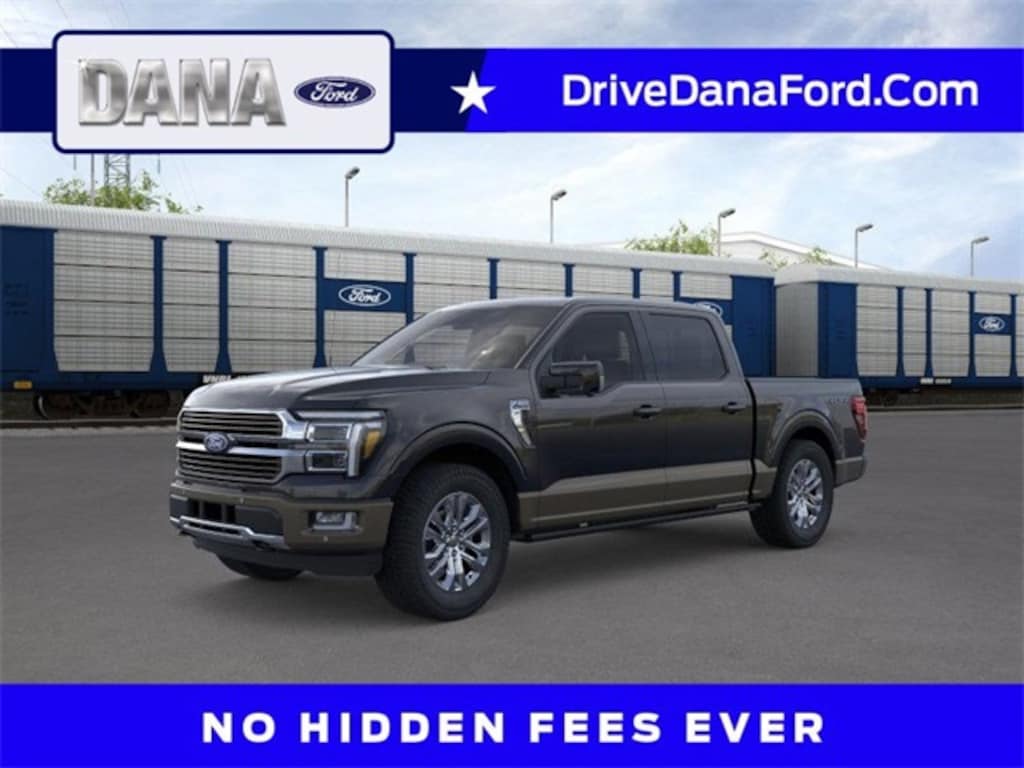 Agate Black Metallic 2025 Ford F-150 King Ranch 4WD 10-Speed Automatic 3.5L V6 EcoBoost 4WD, 14 Speakers, 4-Wheel Disc Brakes, ABS brakes, Adjustable pedals, Air Conditioning, Alloy wheels, AM/FM radio: SiriusXM with 360L, Auto High-beam Headlights, Auto tilt-away steering wheel, Auto-dimming door mirrors, Auto-dimming Rear-View mirror, Automatic temperature control, Brake assist, Chrome wheels, Compass, Delay-off headlights, Driver door bin, Driver vanity mirror, Dual front impact airbags, Dual front side impact airbags, Electronic Locking w/3.55 Axle Ratio, Electronic Stability Control, Emergency communication system: SYNC 4 911 Assist, Front anti-roll bar, Front Bucket Seats, Front Center Armrest, Front dual zone A/C, Front fog lights, Front License Plate Bracket, Front reading lights, Front wheel independent suspension, Fully automatic headlights, Garage door transmitter, Genuine wood dashboard insert, Heads-Up Display, Heated door mirrors, Heated front seats, Heated rear seats, Heated steering wheel, Illuminated entry, King Ranch Multicontour Leather Bucket Seats, Leather steering wheel, Low tire pressure warning, Memory seat, Navigation system: Connected Navigation, Occupant sensing airbag, Outside temperature display, Overhead airbag, Overhead console, Panic alarm, Passenger door bin, Passenger vanity mirror, Pedal memory, Power door mirrors, Power driver seat, Power moonroof, Power passenger seat, Power steering, Power windows, Radio data system, Radio: B&O Unleashed Sound System by Bang & Olufsen, Rain sensing wipers, Rear reading lights, Rear seat center armrest, Rear step bumper, Rear window defroster, Remote keyless entry, Security system, Speed control, Split folding rear seat, Steering wheel memory, Steering wheel mounted audio controls, SYNC 4 w/Enhanced Voice Recognition, Tachometer, Telescoping steering wheel, Tilt steering wheel, Traction control, Trip computer, Turn signal indicator mirrors, Variably intermittent wipers, Ventilated front seats, Voltmeter, Wheels: 20" Chrome-Like PVD, 4WD.