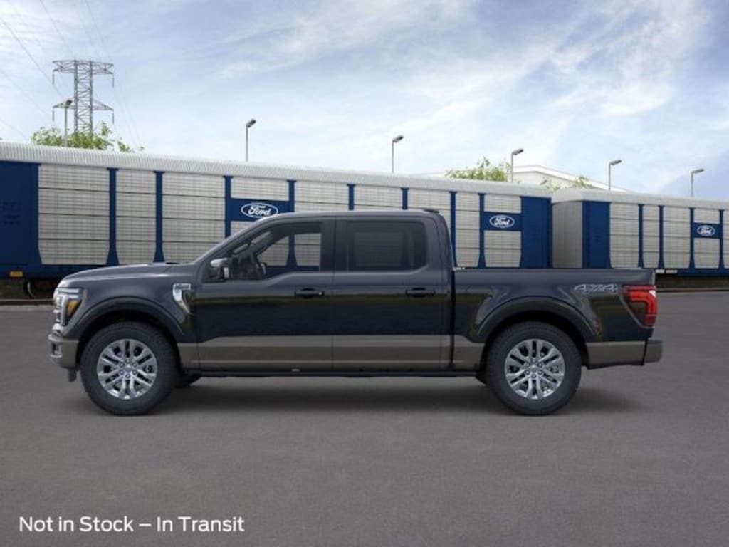 Agate Black Metallic 2025 Ford F-150 King Ranch 4WD 10-Speed Automatic 3.5L V6 EcoBoost 4WD, 14 Speakers, 4-Wheel Disc Brakes, ABS brakes, Adjustable pedals, Air Conditioning, Alloy wheels, AM/FM radio: SiriusXM with 360L, Auto High-beam Headlights, Auto tilt-away steering wheel, Auto-dimming door mirrors, Auto-dimming Rear-View mirror, Automatic temperature control, Brake assist, Chrome wheels, Compass, Delay-off headlights, Driver door bin, Driver vanity mirror, Dual front impact airbags, Dual front side impact airbags, Electronic Locking w/3.55 Axle Ratio, Electronic Stability Control, Emergency communication system: SYNC 4 911 Assist, Front anti-roll bar, Front Bucket Seats, Front Center Armrest, Front dual zone A/C, Front fog lights, Front License Plate Bracket, Front reading lights, Front wheel independent suspension, Fully automatic headlights, Garage door transmitter, Genuine wood dashboard insert, Heads-Up Display, Heated door mirrors, Heated front seats, Heated rear seats, Heated steering wheel, Illuminated entry, Internet access capable: FordPass Connect 5G, King Ranch Multicontour Leather Bucket Seats, Leather steering wheel, Low tire pressure warning, Memory seat, Navigation system: Connected Navigation, Occupant sensing airbag, Outside temperature display, Overhead airbag, Overhead console, Panic alarm, Passenger door bin, Passenger vanity mirror, Pedal memory, Power door mirrors, Power driver seat, Power moonroof, Power passenger seat, Power steering, Power windows, Radio data system, Radio: B&O Unleashed Sound System by Bang & Olufsen, Rain sensing wipers, Rear reading lights, Rear seat center armrest, Rear step bumper, Rear window defroster, Remote keyless entry, Security system, Speed control, Split folding rear seat, Steering wheel memory, Steering wheel mounted audio controls, SYNC 4 w/Enhanced Voice Recognition, Tachometer, Telescoping steering wheel, Tilt steering wheel, Traction control, Trip computer, Turn signal indicator mirrors, Variably intermittent wipers, Ventilated front seats, Voltmeter, Wheels: 20" Chrome-Like PVD, 4WD.