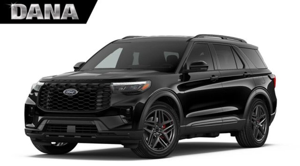 Agate Black Metallic 2026 Ford Explorer ST-Line 4WD 10-Speed Automatic 2.3L EcoBoost I-4 4WD, 10 Speakers, 110V/150W AC Power Outlet, 2nd Row Captain's Chairs w/E-Z Entry and Armrest, 2nd Row Heated Seats, 3rd row seats: bench, 4-Wheel Disc Brakes, ABS brakes, Air Conditioning, Alloy wheels, AM/FM radio: SiriusXM with 360L, Ambient Lighting, Apple CarPlay/Android Auto, Auto High-beam Headlights, Auto-Dimming Interior Rear-View Mirror, Automatic temperature control, BlueCruise (equipment + 1-Year + 90-Day Plan), BlueCruise Hardware, Brake assist, Bumpers: body-color, Compass, Delay-off headlights, Driver door bin, Driver vanity mirror, Dual front impact airbags, Dual front side impact airbags, Electronic Stability Control, Emergency communication system: 911 Assist, Exterior Parking Camera Rear, Ford Connectivity Package (one-Time Purchase - 7 Years), Four wheel independent suspension, Front and 2nd Rows Floor Liners with Carper Floor Mats, Front anti-roll bar, Front Bucket Seats, Front Center Armrest, Front dual zone A/C, Front fog lights, Front License Plate Bracket, Front reading lights, Fully automatic headlights, Garage door transmitter, Heated door mirrors, Heated front seats, Heated steering wheel, Heated Unique Cloth Captain's Chairs, Illuminated entry, Knee airbag, Leather steering wheel, Low tire pressure warning, Manual-Folding Sideview Mirrors, Memory Driver's Seat, Navigation System, Occupant sensing airbag, Outside temperature display, Overhead airbag, Overhead console, Panic alarm, Panoramic Fixed Glass Roof with Power Shade, Passenger door bin, Passenger vanity mirror, Performance Brakes, Power door mirrors, Power driver seat, Power Liftgate, Power passenger seat, Power steering, Power windows, Premium Package, Radio: B&O Sound System by Bang and Olufsen, Rain-Sensing Wipers (front Only), Rear air conditioning, Rear anti-roll bar, Rear reading lights, Rear window defroster, Rear window wiper, Red Painted Performance Front and Rear Brake Calipers, Remote keyless entry, SecuriCode Keyless Entry Keypad, Security system, SiriusXM with 360L (3-Year Plan), Speed control, Speed-sensing steering, Speed-Sensitive Wipers, Split folding rear seat, Spoiler, ST-Line Street Pack, Steering wheel mounted audio controls, Tachometer, Telescoping steering wheel, Tilt steering wheel, Traction control, Trip computer, Variably intermittent wipers, Wheels: 20" Ebony-Painted Machined Aluminum, Wheels: 21" Magnetite-Painted Aluminum, 4WD.