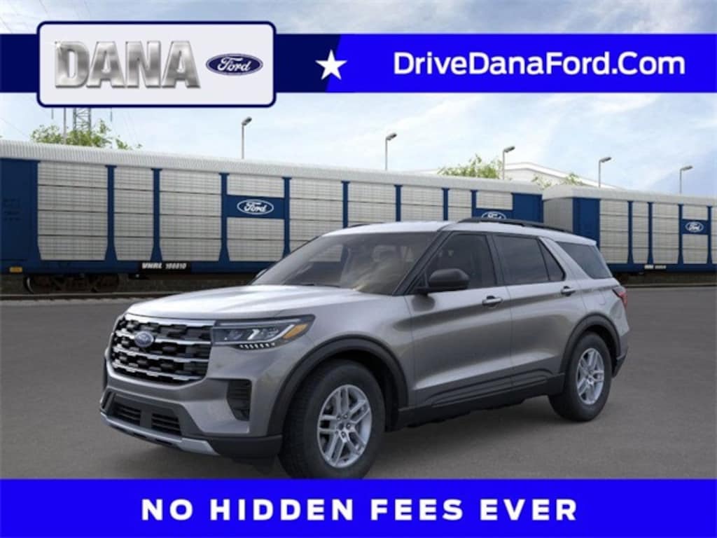 Carbonized Gray Metallic 2026 Ford Explorer Active 4WD 10-Speed Automatic 2.3L EcoBoost I-4 4WD, 3rd row seats: bench, 4-Wheel Disc Brakes, 6 Speakers, ABS brakes, Air Conditioning, Alloy wheels, AM/FM radio: SiriusXM with 360L, AM/FM Stereo, Apple CarPlay/Android Auto, Auto High-beam Headlights, Automatic temperature control, Brake assist, Bumpers: body-color, Compass, Delay-off headlights, Driver door bin, Driver vanity mirror, Dual front impact airbags, Dual front side impact airbags, Electronic Stability Control, Emergency communication system: 911 Assist, Exterior Parking Camera Rear, Four wheel independent suspension, Front and 2nd Rows Floor Liners with Carper Floor Mats, Front anti-roll bar, Front Bucket Seats, Front Center Armrest, Front dual zone A/C, Front License Plate Bracket, Front reading lights, Fully automatic headlights, Heated ActiveX Seating Material Captain's Chairs, Heated door mirrors, Illuminated entry, Knee airbag, Low tire pressure warning, Navigation System, Occupant sensing airbag, Outside temperature display, Overhead airbag, Overhead console, Panic alarm, Passenger door bin, Passenger vanity mirror, Power driver seat, Power steering, Power windows, Rear air conditioning, Rear anti-roll bar, Rear reading lights, Rear window defroster, Rear window wiper, Remote keyless entry, Security system, Speed control, Speed-sensing steering, Speed-Sensitive Wipers, Split folding rear seat, Spoiler, Steering wheel mounted audio controls, Tachometer, Telescoping steering wheel, Tilt steering wheel, Traction control, Trip computer, Unique Cloth Captain's Chairs, Variably intermittent wipers, Wheels: 18" Sparkle Silver-Painted Aluminum, 4WD.