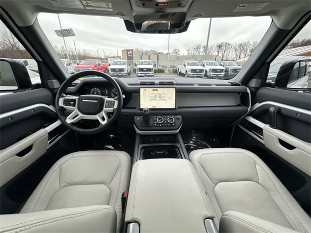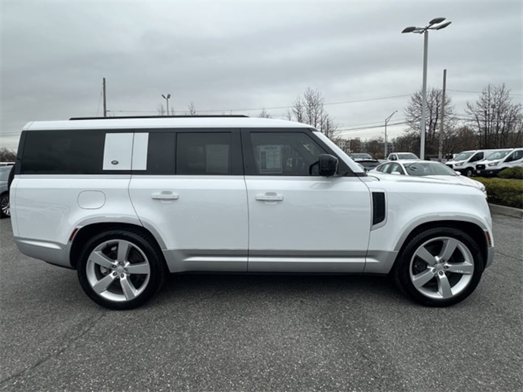 CARFAX One-Owner. 2023 Land Rover Defender 130 First Edition *Fully detailed*, *Fresh oil change*, Navigation system: Connected Navigation PIVI Pro, Power moonroof, Wheels: 22" Gloss Sparkle Silver Style 5098, 14-Way Heated & Cooled Electric Memory Seats, 15 Speakers, 3.55 Axle Ratio, 3rd row seats: split-bench, 4-Wheel Disc Brakes, ABS brakes, Adaptive suspension, Air Conditioning, AM/FM radio: SiriusXM, Apple CarPlay & Android Auto, Auto High-beam Headlights, Auto tilt-away steering wheel, Auto-dimming door mirrors, Auto-dimming Rear-View mirror, Automatic temperature control, Brake assist, Bumpers: body-color, Compass, Delay-off headlights, Driver door bin, Driver vanity mirror, Dual front impact airbags, Dual front side impact airbags, Electronic Stability Control, Exterior Parking Camera Rear, Four wheel independent suspension, Front anti-roll bar, Front Bucket Seats, Front Center Armrest, Front dual zone A/C, Front fog lights, Front reading lights, Fully automatic headlights, Garage door transmitter: HomeLink, Genuine wood console insert, Genuine wood door panel insert, Heads-Up Display, Heated door mirrors, Heated front seats, Illuminated entry, Leather Shift Knob, Leather steering wheel, Low tire pressure warning, Memory seat, Occupant sensing airbag, Outside temperature display, Overhead airbag, Overhead console, Panic alarm, Passenger door bin, Passenger vanity mirror, Power door mirrors, Power driver seat, Power passenger seat, Power steering, Power windows, Radio data system, Radio: 700W 15 Speaker Meridian Surround Sound Sys, Rain sensing wipers, Rear air conditioning, Rear anti-roll bar, Rear dual zone A/C, Rear fog lights, Rear reading lights, Rear seat center armrest, Rear window defroster, Rear window wiper, Remote keyless entry, Security system, Speed control, Speed-sensing steering, Speed-Sensitive Wipers, Split folding rear seat, Steering wheel memory, Steering wheel mounted audio controls, Tachometer, Telescoping steering wheel, Tilt steering wheel, Traction control, Trip computer, Variably intermittent wipers, Ventilated front seats, Weather band radio, Windsor Leather Seat Trim, Navigation system: Connected Navigation PIVI Pro, Power moonroof, Wheels: 22" Gloss Sparkle Silver Style 5098.